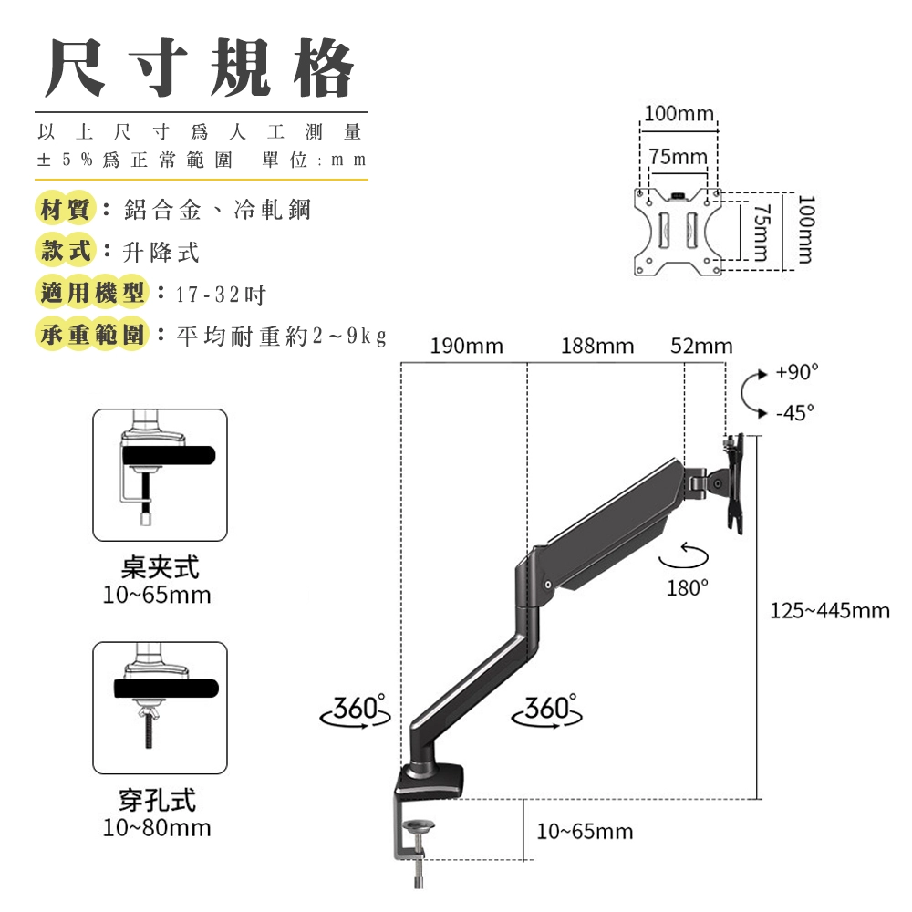 4️⃣桌夾式/穿孔式,支援兩種桌面安裝方式