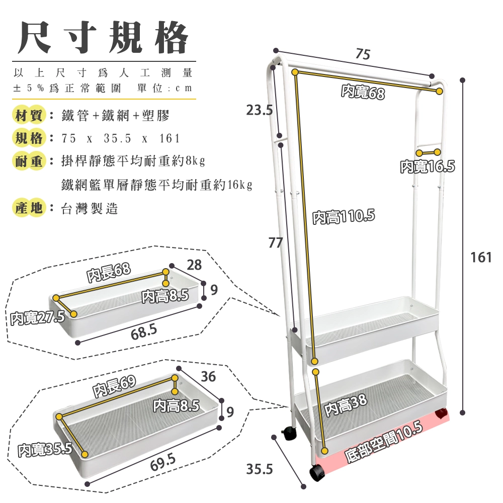 ✔️ 雙層網籃設計:下方兩層收納空間,包包、鞋子、小物通通有位子~