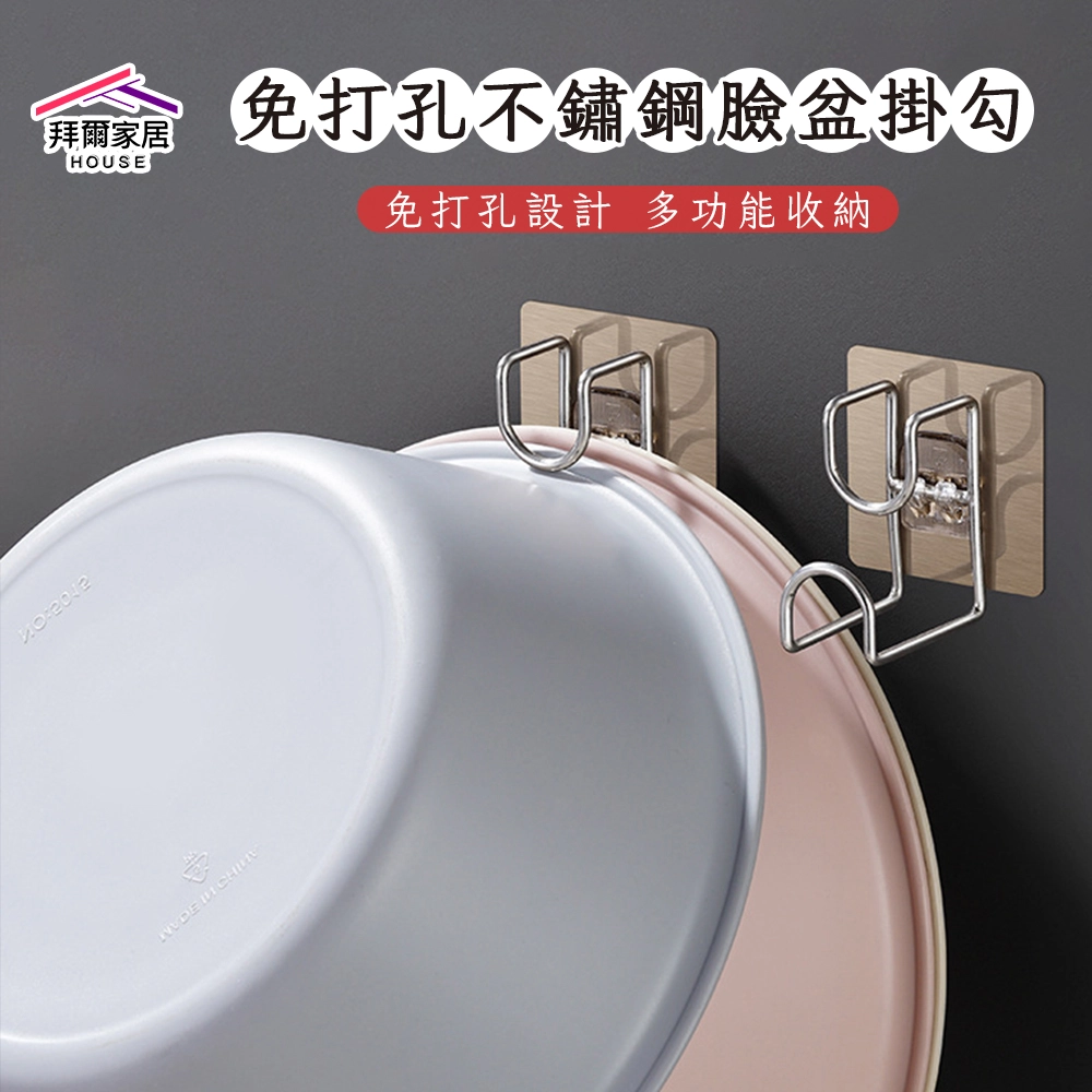 免打孔不鏽鋼臉盆掛勾 台灣現貨 不鏽鋼掛勾小巧一鉤,收納無憂!