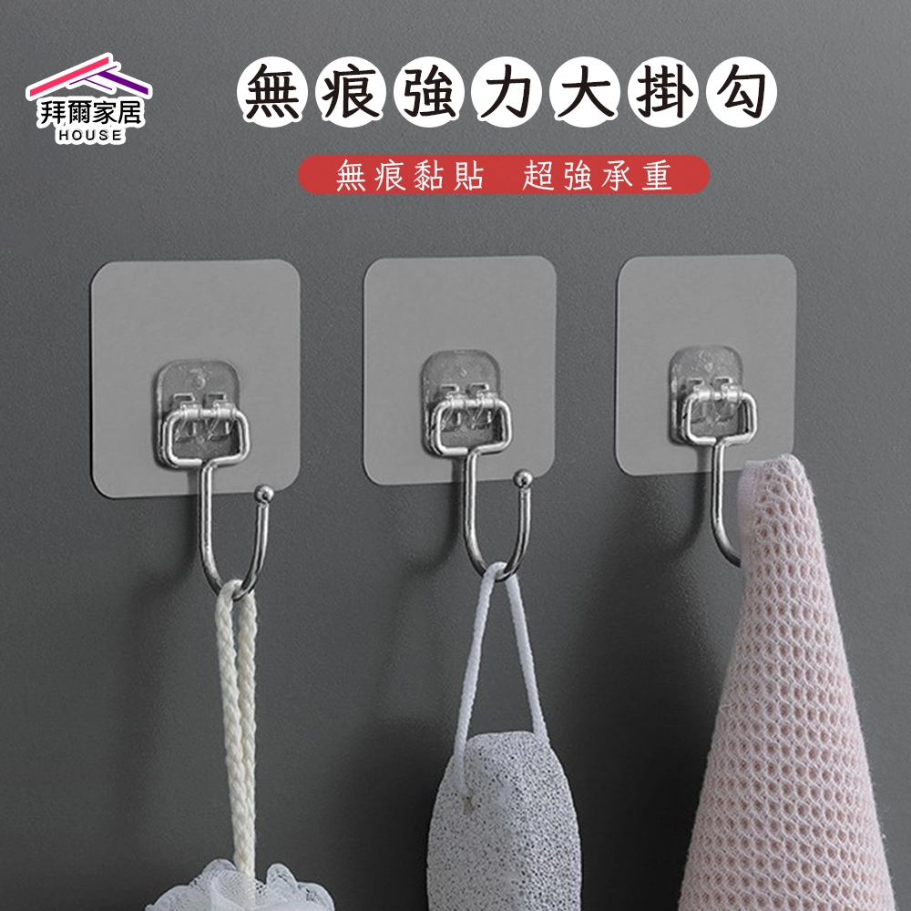 無痕強力大掛勾 台灣現貨 無痕掛勾 【拜爾家居】 無痕強力黏貼掛勾 加大掛勾 承重掛勾 免釘掛勾 浴室廚房收納掛勾